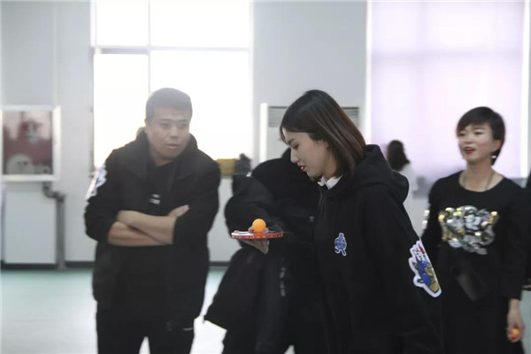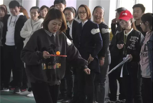 在比賽中隊(duì)友們相互鼓勵(lì),相互配合。乒乓球接力不僅考驗(yàn)隊(duì)員的速度、耐心,更考驗(yàn)著隊(duì)員們團(tuán)結(jié)協(xié)作的能力,以及彼此的默契程度?,F(xiàn)場(chǎng)游戲活動(dòng)中,比賽氣氛和諧快樂,大家都被簡(jiǎn)單的互動(dòng)游戲所感染,一陣陣吶喊助威聲從運(yùn)動(dòng)場(chǎng)上傳來。